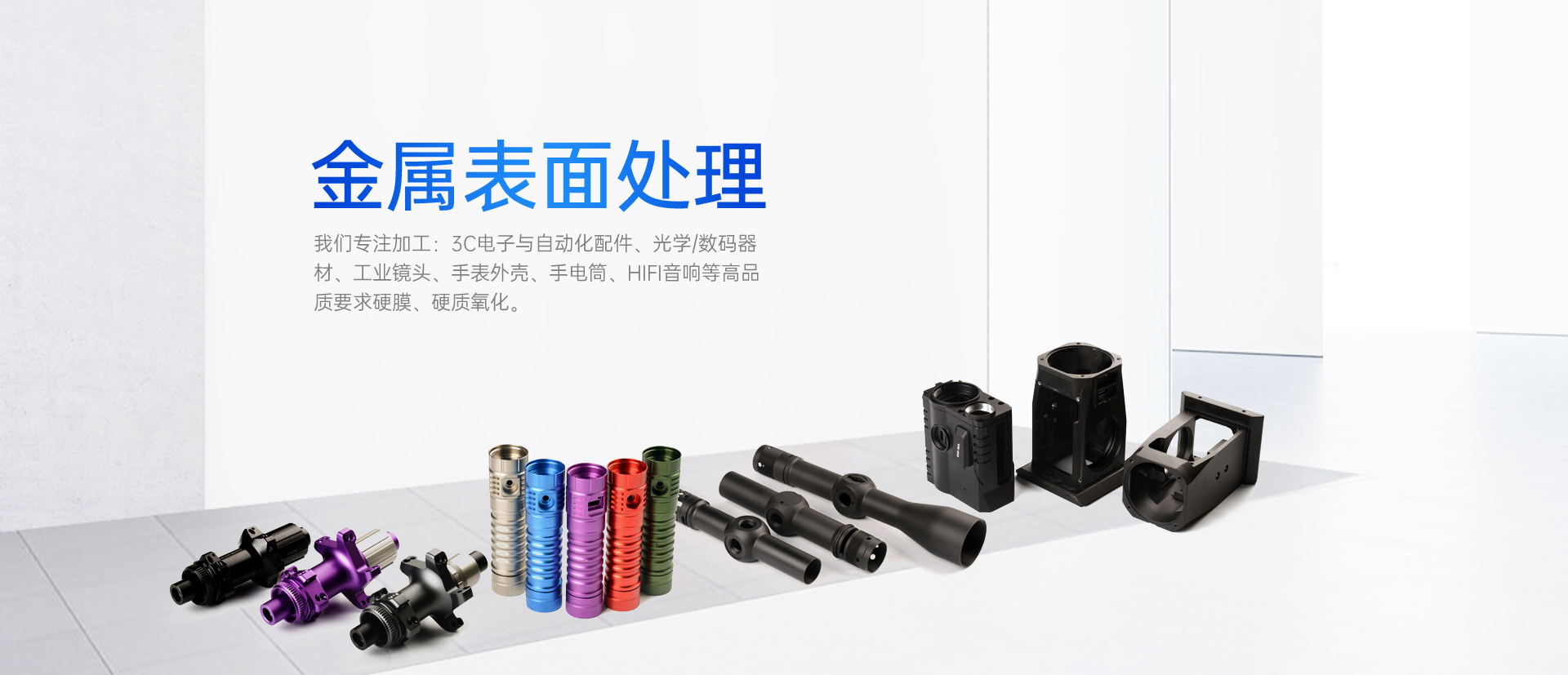 我們專注加工:3C電子與自動化配件、光學/數碼器材、工業鏡頭、手表外殼、手電筒、HIFI音響等高品質要求硬膜、硬質氧化。成立近20年來,收獲了業界一定的口碑,是珠三角地區專業大型的硬膜、硬氧、普氧中心。